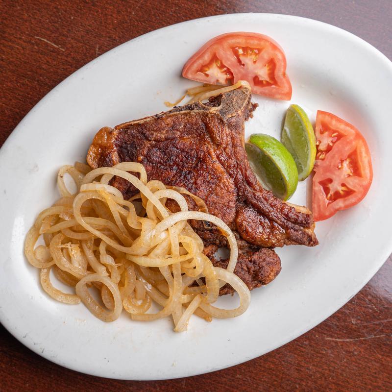 1 Piece $12.00 | 2 Pieces $17.00 • Thick-cut pork chop grilled on our iron charbroiler.