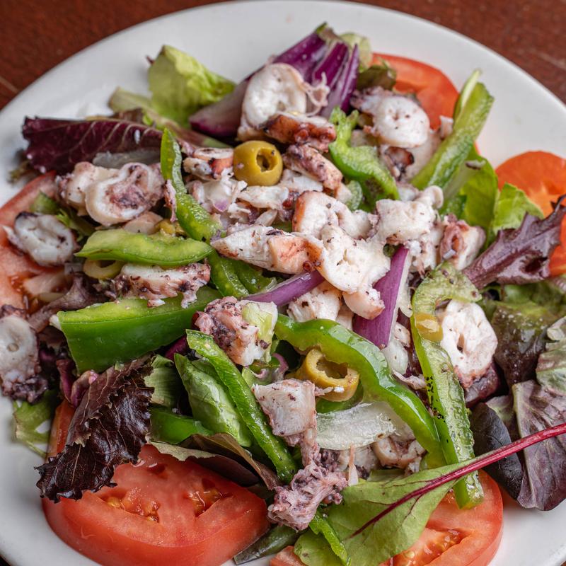 Lightly boiled salted cod. Lettuce, tomato, onions, and green bell peppers. Topped with a fresh blend of olives, capers, extra virgin olive oil, and vinegar.
